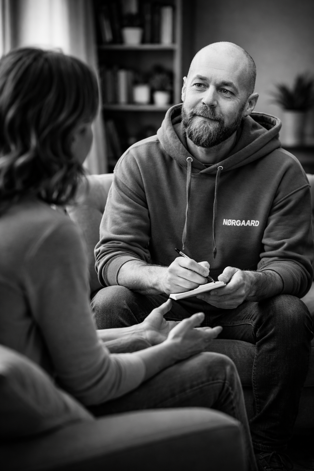 Individuel terapi og coaching i trygge og fortrolige rammer. Sammen kan vi arbejde med personlig udvikling, angst, stress, depression, sorg eller mindreværd – altid med udgangspunkt i dig. Med fokus på klientcentreret samtaleterapi hjælper jeg dig med at skabe ro, selvforståelse og mental trivsel.